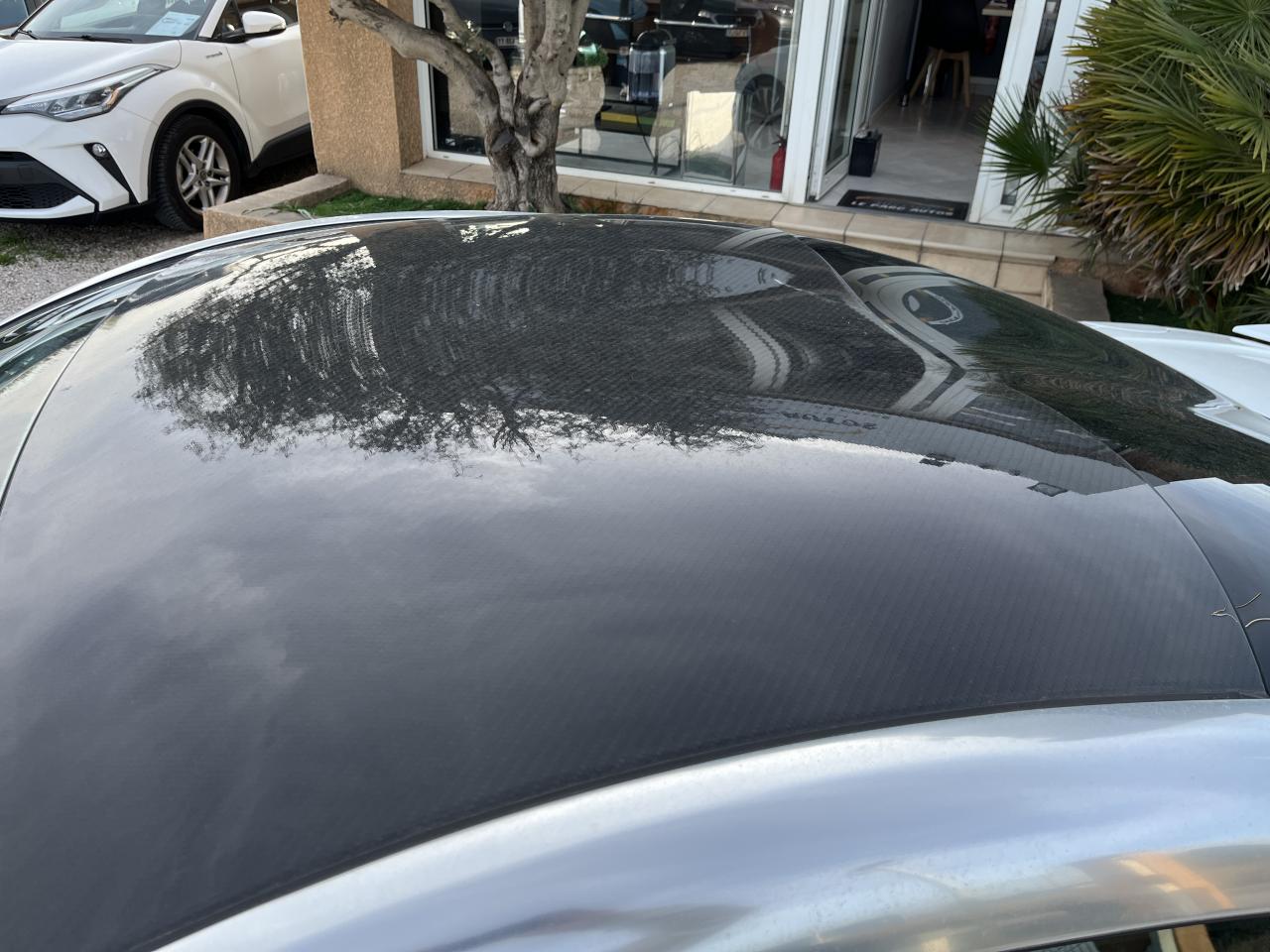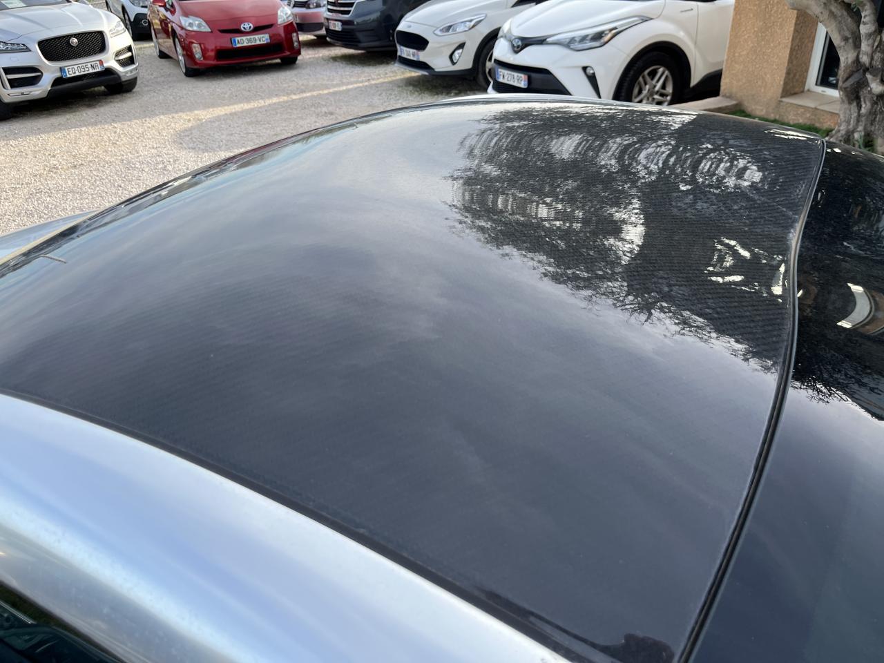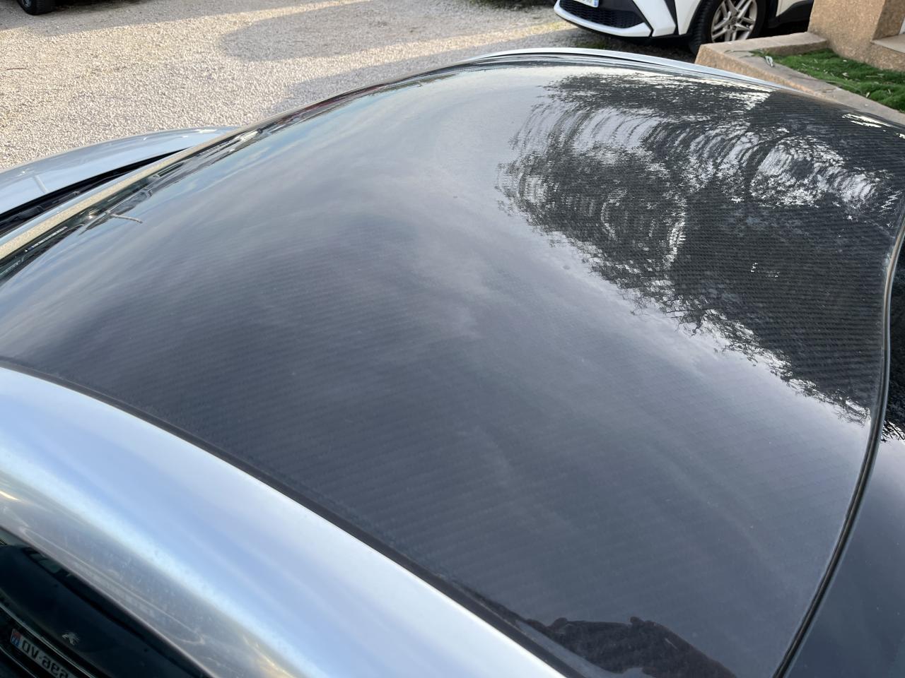 Aide sonore et graphique au stationnement avant Boitiers de rétroviseurs extérieurs noir brillant Jantes alliage 19" Technical Grey Mi-cuir Nappa / Alcantara et sur-tapis Peinture Blanc Nacré Toit carbone mat Lecteur DVD avec écran rotatif 1 Pommeau de levier de vitesses bvm6(Cuir gris et aluminium)1 Spoiler avant noir
