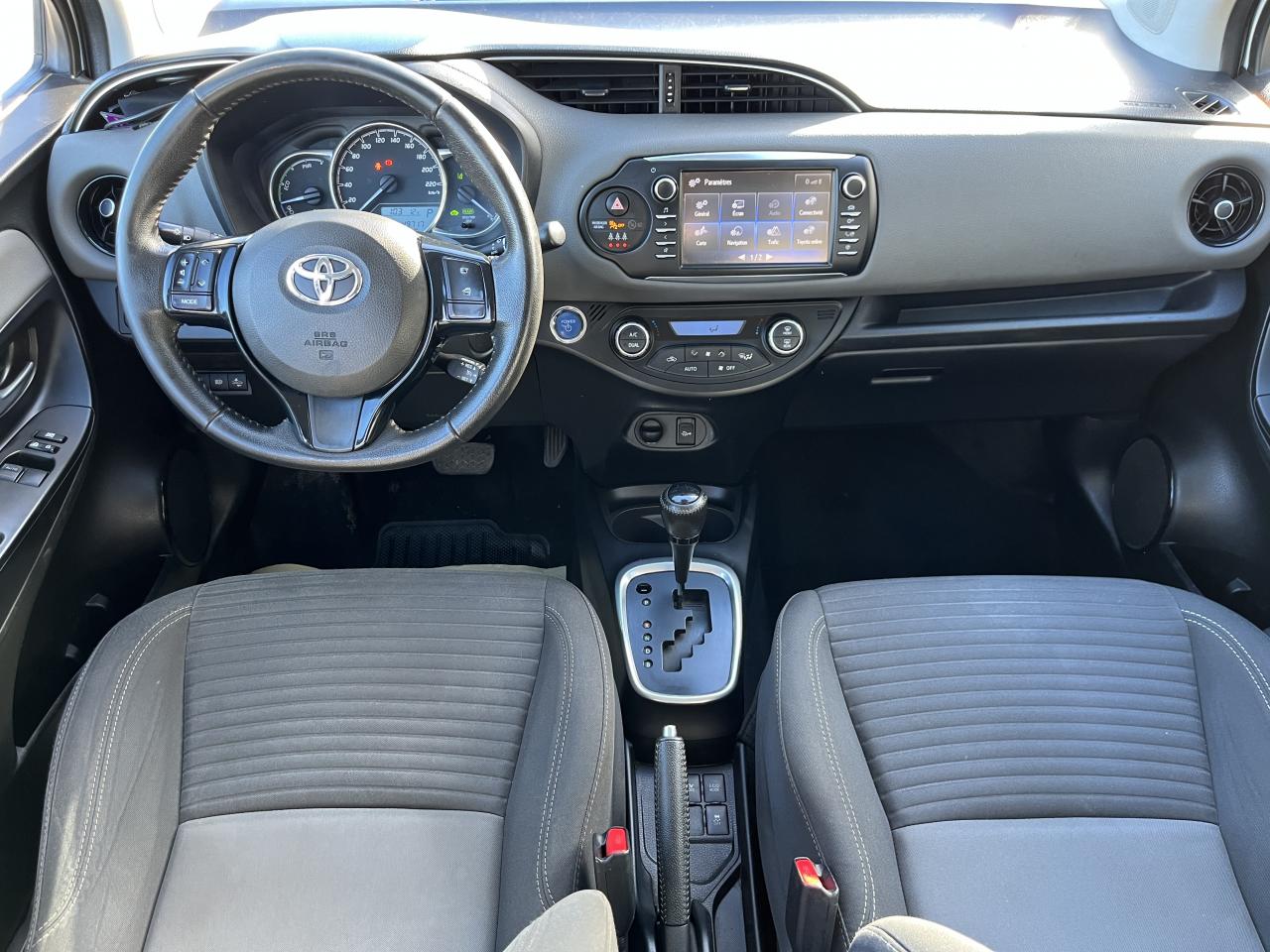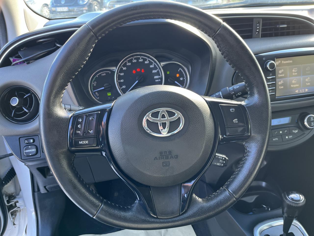 7 airbags (frontaux, latéraux, rideaux et protège-genoux conducteur)Aide au démarrage en côteCaméra de recul "Rear assist"Banquette arrière rabattable 40/60Calandre noir laquéCapteur de pluieCiel de toit gris clairClimatisation automatique bi-zoneCommandes au volantDirection assistée électriqueDouble plancher dans le coffreEnjoliveurs 15” KaoriFermeture et ouverture centralisées des portes à distanceFollow-me home (phares à extinction différée)Freins arrière à disquesIndicateur de perte de pression des pneusKit de réparation anti-crevaisonMiroir de courtoisie conducteurMiroir de courtoisie passagerOrdinateur de bordPeinture Blanc PurPhares avant halogènes avec feux de jourPlanche de bord “Soft touch”Poignées de portes couleur carrosseriePommeau du levier de vitesse en cuirPrise USBRétroviseurs extérieurs chauffantsRétroviseurs extérieurs couleur carrosserieRétroviseurs extérieurs électriquesSellerie tissuSiège conducteur réglable en hauteurSystème audio radio / CD 6 haut-parleursSystème de démarrage sans cléSystème Toyota Touch 2Tapis de sol avant et arrière veloursToyota Safety SenseVitres avant électriquesVolant réglable en hauteur et en profondeur
